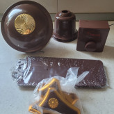 رنگ سفید و قهوای تیره موجود داره با گل طلایی